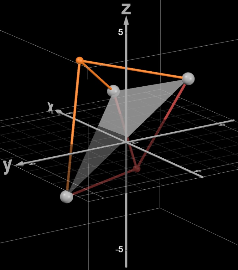 In this method, I realized that, with the advent of the height value that I had initially looked to for error detection, I could calculate the whole cascade of right triangles that the tetrahedron is built out of.